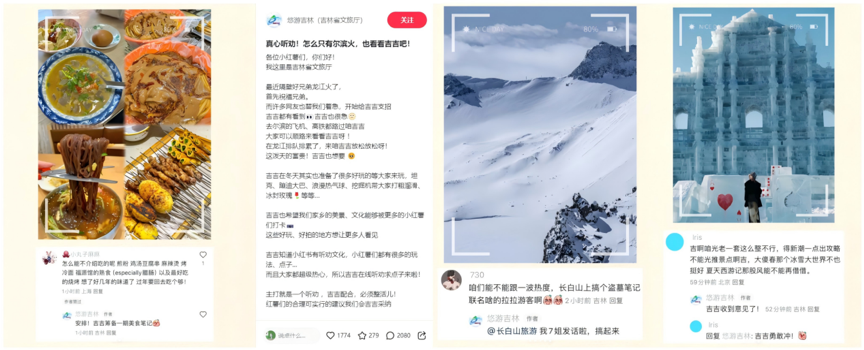 前有吉林文旅在小紅書官方賬號發(fā)布“聽勸求助”筆記,全網(wǎng)征集“吉吉該怎么整活兒”,單條筆記收獲2000+條評論,評論數(shù)量高出其他內容筆記10倍之多。