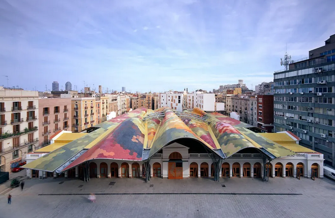 在改造過程中,設計師充分尊重市場的歷史和傳統(tǒng),保留了原有的建筑結構和部分古老的攤位設施。同時,引入了現(xiàn)代化的設計理念,如采用新型建筑材料、優(yōu)化空間布局、增加環(huán)保設施等,使市場既具有歷史底蘊,又充滿現(xiàn)代活力。如,波浪形的彩色屋頂,由不同顏色的陶瓷碎片拼接而成,宛如一幅巨大的抽象畫,為市場增添了獨特的藝術氛圍。